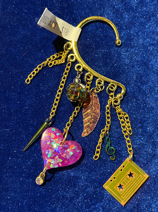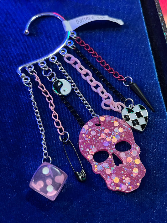 Ear Cuff Single with Pink Skull, Dice, Yin Yang