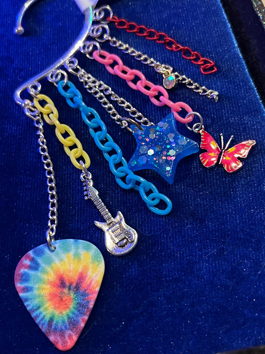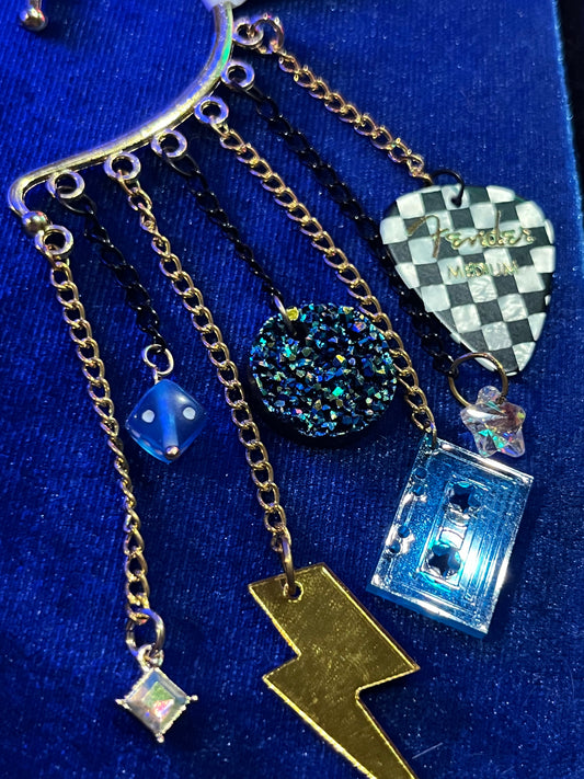 Ear Cuff Single Guitar Pick and Lightning Bolt