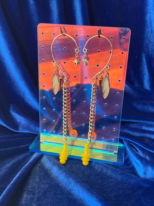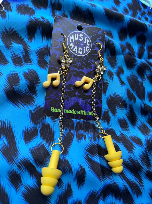 Ear Plug Earrings - Yellow Butterfly and Music Note