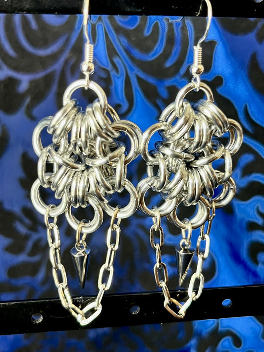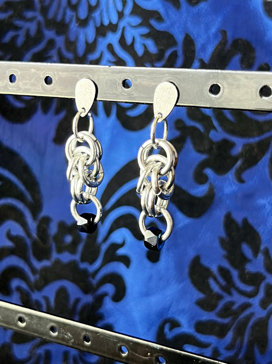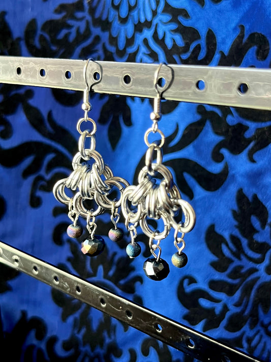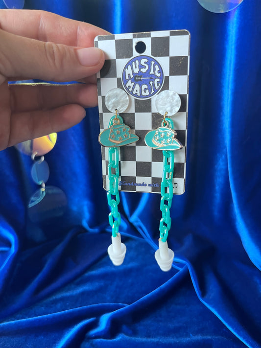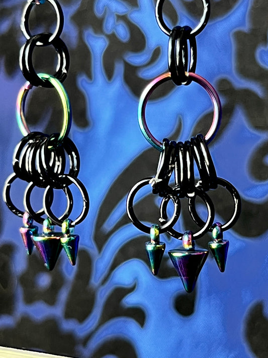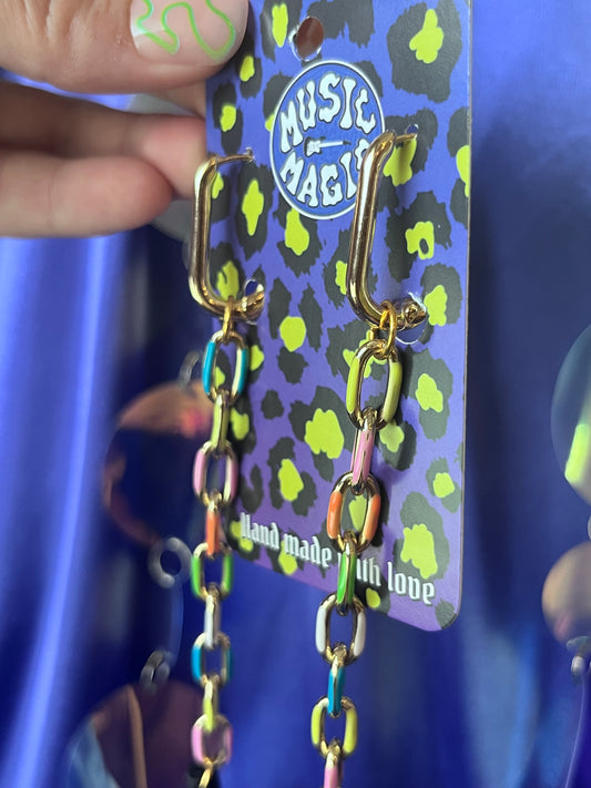 • Ear Plug Earrings - Gold Long Hoop Rainbow Chain
