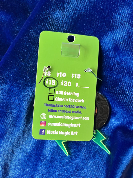 Rock and Roll Vinyl Lightning Bolt Earrings