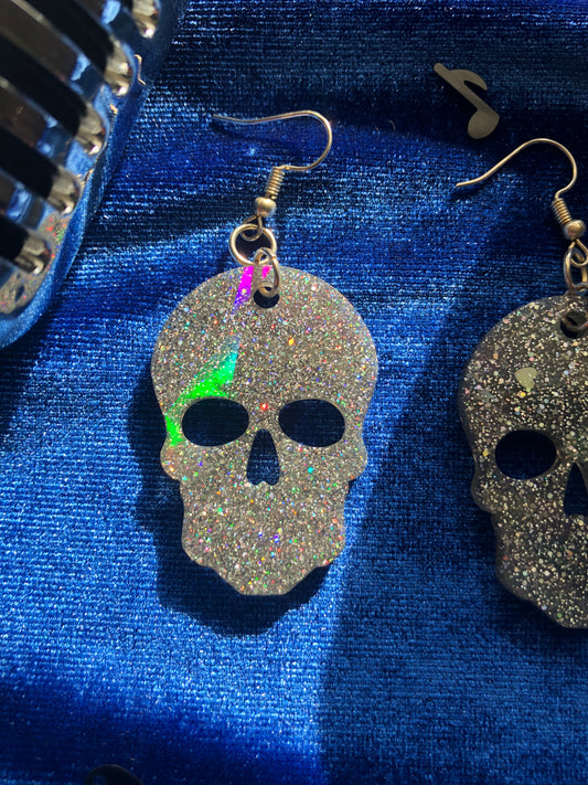 Holographic Skull Glitter Earrings