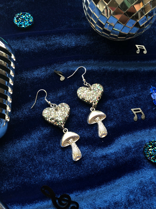 Heart and Mushroom Dangle Earrings