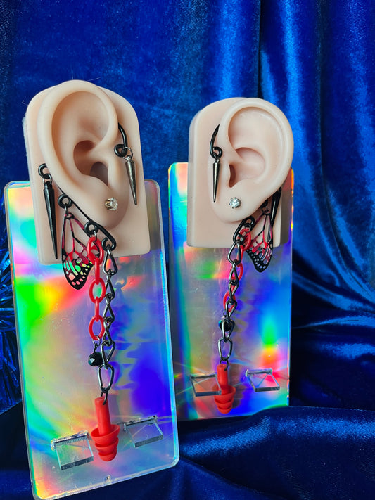 Ear Plug Ear Cuff Set - Red Butterfly Wings