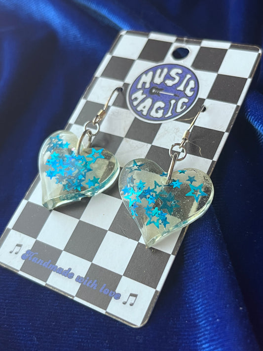 Star Glitter Heart Earrings