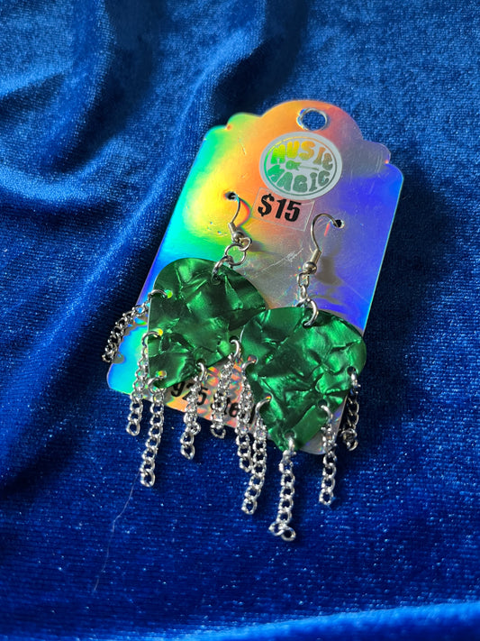 Green Guitar Pick and Chain Earrings