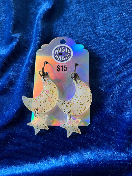 Golden Moon and Star Dangle Earrings