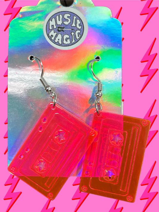 Neon Pink Cassette Earrings