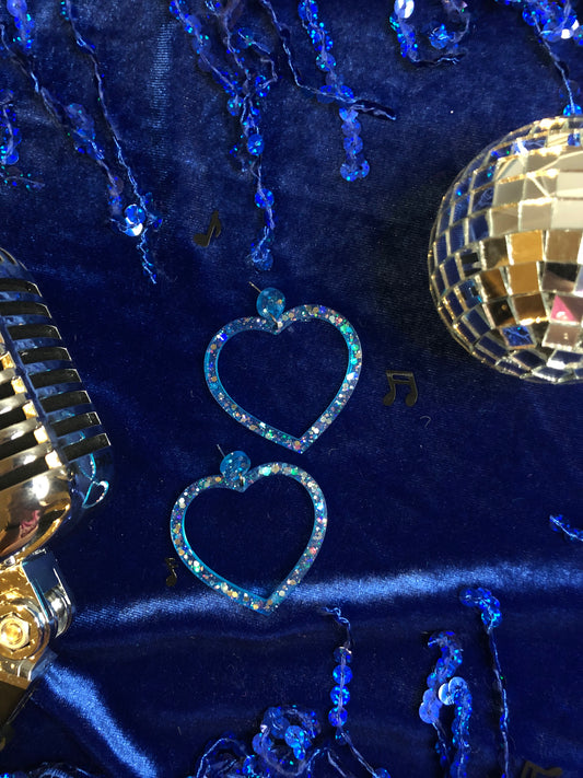 Glitter Blue Heart Resin Earrings