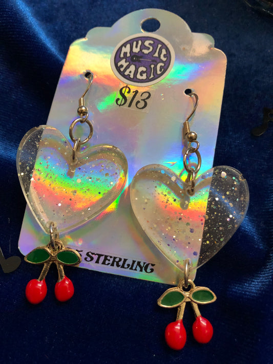 Heart and Cherry Dangle Earrings