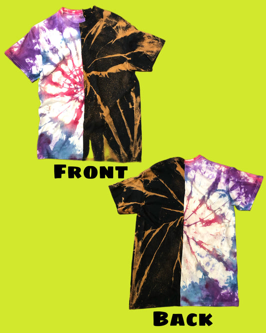 Split Tie Dye and Bleached Tee Shirt