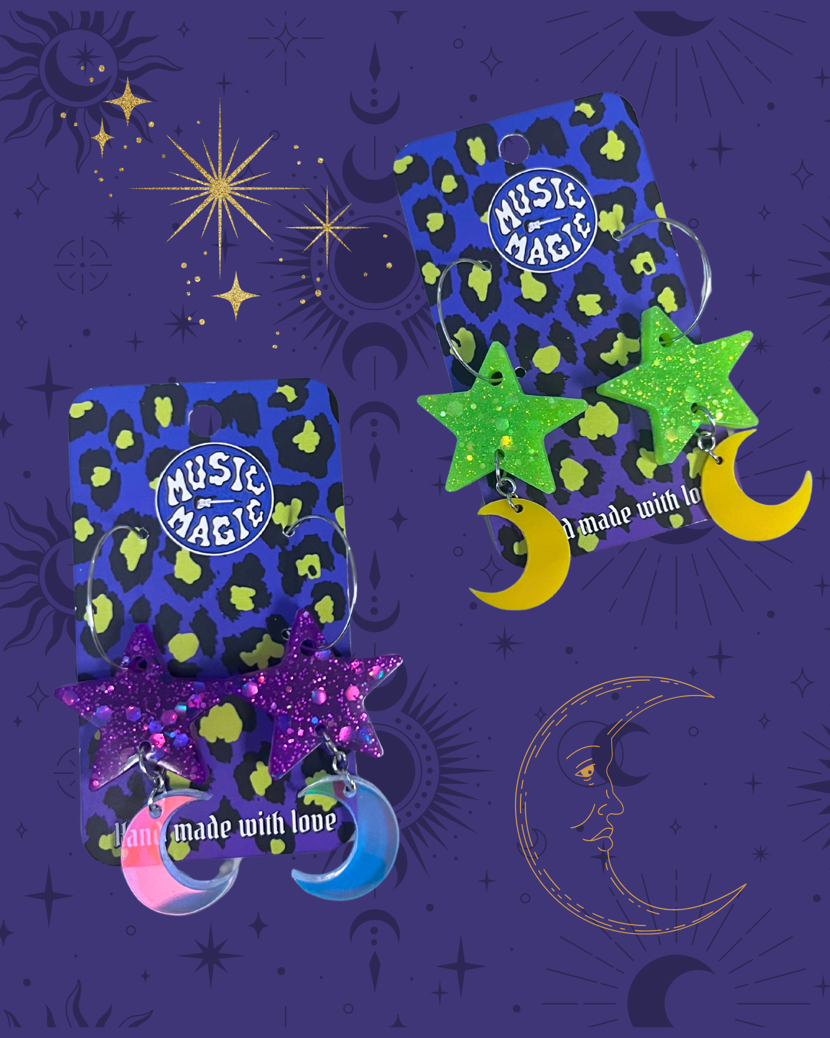 Star and Moon Glitter Resin Earrings